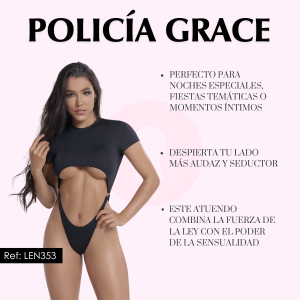 El Disfraz Policia Grace es una pieza de lencería de alto impacto visual y sensualidad elegante, ideal para mujeres que desean resaltar su figura y proyectar confianza, erotismo y sofisticación.