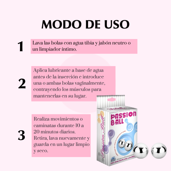 Descubre una nueva forma de bienestar íntimo con las Passion Ball, unas elegantes bolas vaginales de acero quirúrgico diseñadas para fortalecer el suelo pélvico, mejorar la sensibilidad y aumentar el placer femenino.