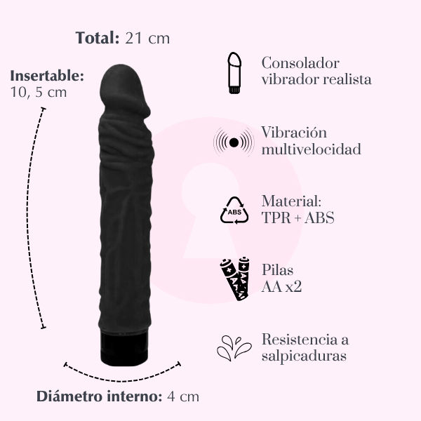 Con el Consolador Vibrador Realista, la satisfacción no tiene límites. Este vibrador está diseñado para quienes buscan una experiencia placentera, intensa y completamente realista. ¡No pierdas la oportunidad de experimentar nuevas sensaciones y llevar tu placer al siguiente nivel con el Consolador Vibrador Realista!