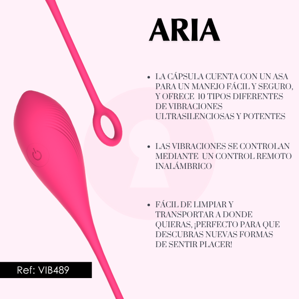 Aria es un huevo vibrador recargable , fabricada íntegramente en silicona suave con la piel con un tacto aterciopelado.