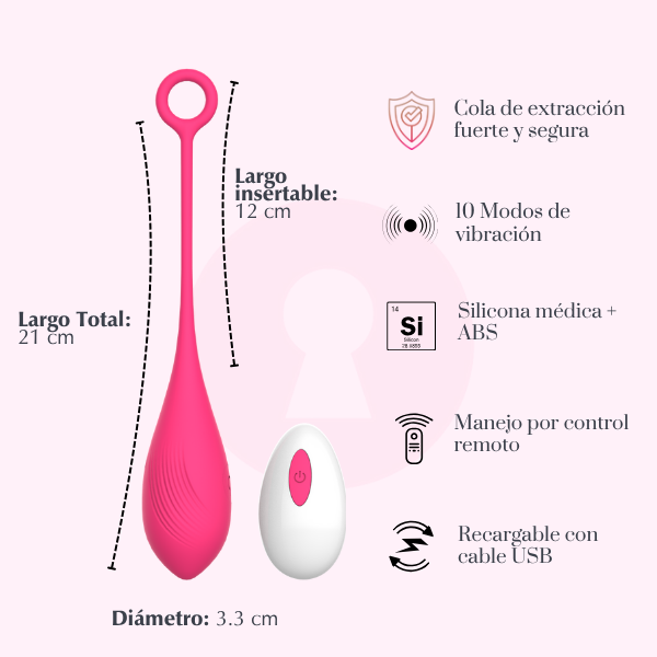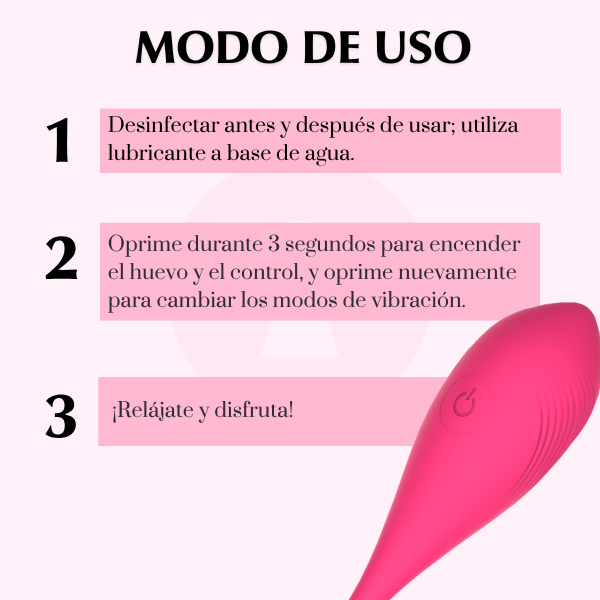 Es resistente a salpicaduras y cuenta con 10 modos de vibración controlados por su control remoto inalámbrico. ¡Impresionante! Perfecto para estimular el clítoris y otros estímulos corporales de una forma MUCHO más placentera. Además, cuenta con una correa de seguridad que proporciona total comodidad y precisión durante su uso. También puedes usarlo como masajeador , pasándolo por tus pechos, entre tus muslos, en tus glúteos o en la persona que te gusta.