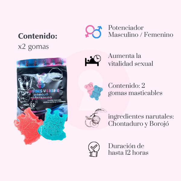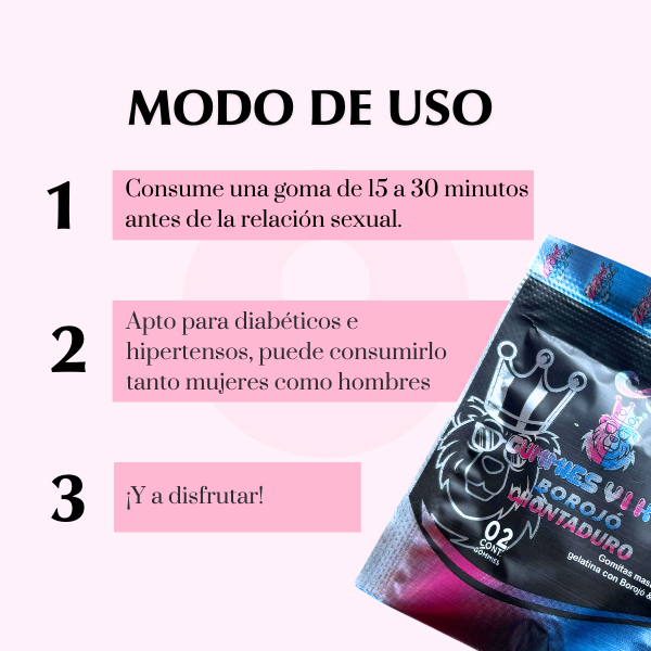 - Forma de uso: Masticar 01 gomita de 15 a 30 minutos antes de ese momento especial